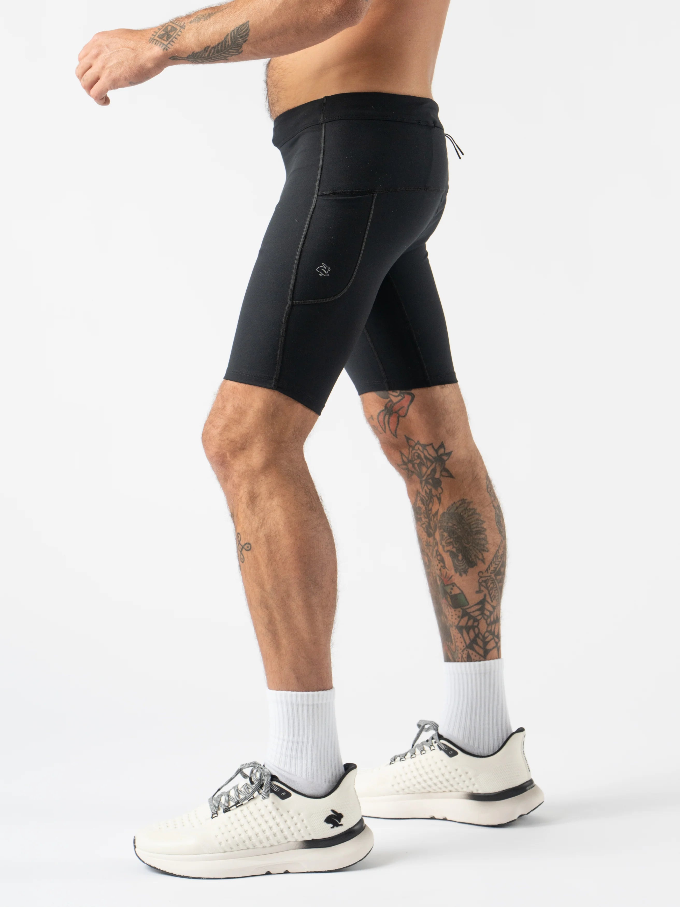 Engineered for competitive runners who demand performance without compromise. These half-length tights stay locked in place through every stride, eliminating the distraction of shifting fabric. Strategic pocket placement keeps your essentials within reach mid-run, while integrated UPF 50+ sun protection shields you from extended outdoor exposure. Designed for those who prioritize speed and reliability.