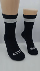 Our locally-manufactured crew sock delivers premium performance through thoughtful engineering. The asymmetrical design with left/right specificity works with technical mesh paneling to guide your foot through each stride. A carefully balanced fibre blend regulates temperature across seasons—breathable when it's warm, insulating when it's cool. The distinctive black and white stripe completes a sock built to eliminate blisters and support serious running.